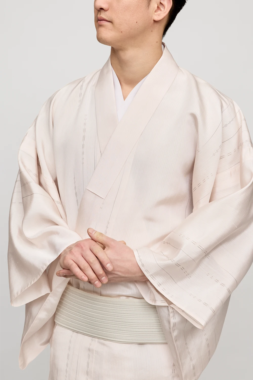 帯:十日町角帯 / 諸紙布 / 段縞 / BEIGE ¥165,000(税込)