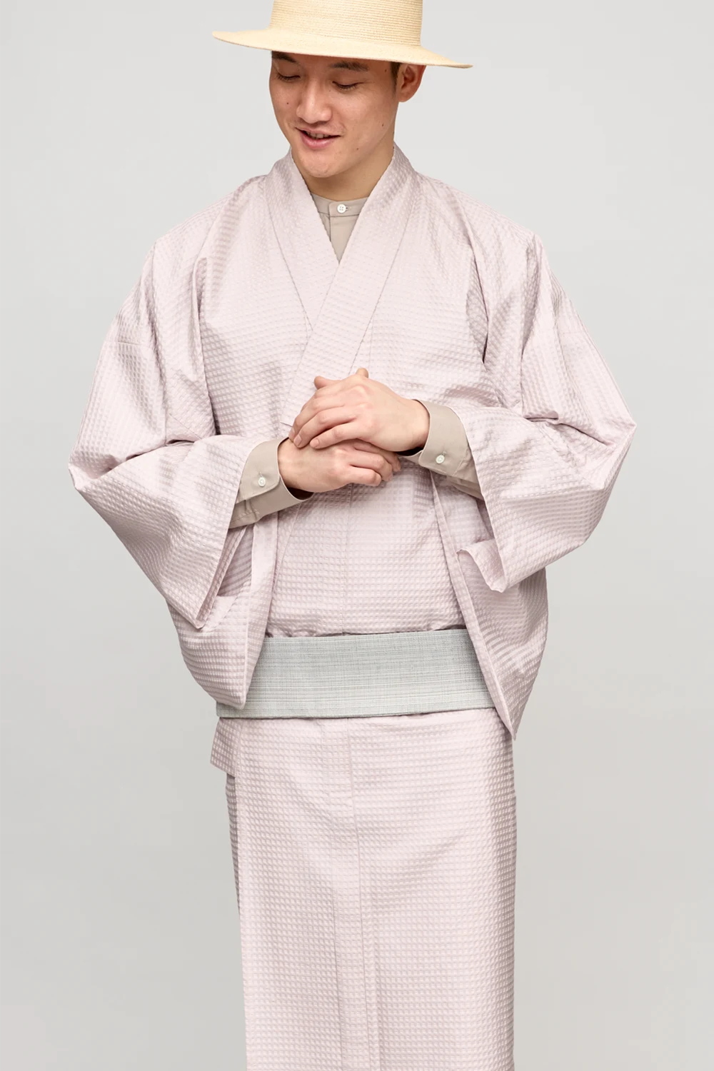 羽織:米沢織 / シルクシアサッカー / 平織サテン / GRAY ¥143,000(税込)